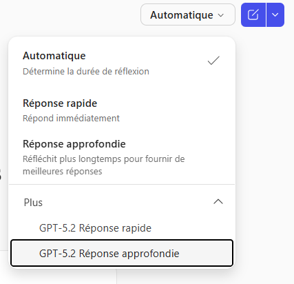 Microsoft permet de choisir ce modèle dans le menu de Copilot Chat et Copilot Studio. C’est particulièrement utile pour des demandes un peu plus complexes.