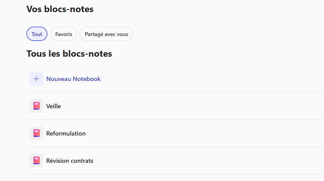 Depuis la page d’accueil Microsoft 365 Copilot, ouvrez le menu à gauche, cliquez sur Bloc-notes ou Notebooks, puis créez un nouveau bloc-notes.