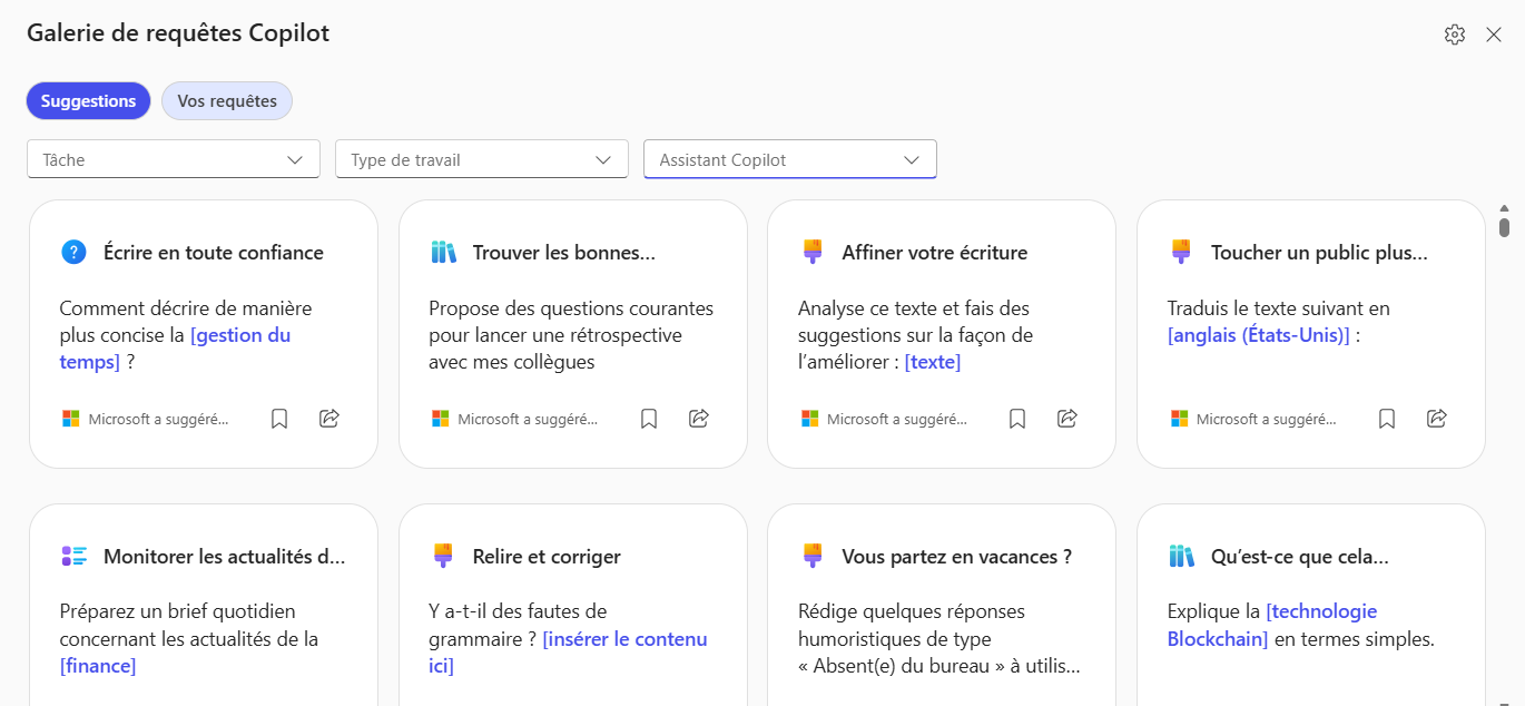 Vous pouvez également cliquer sur ce lien pour avoir l’accès direct vers la Galerie de requêtes Copilot.