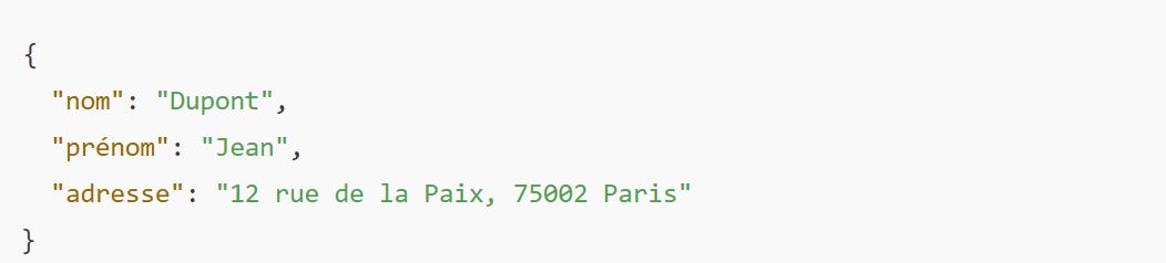 Pas besoin de maîtriser le code pour en comprendre l’idée : le JSON sert à représenter une information sous forme de paires « clé : valeur ».